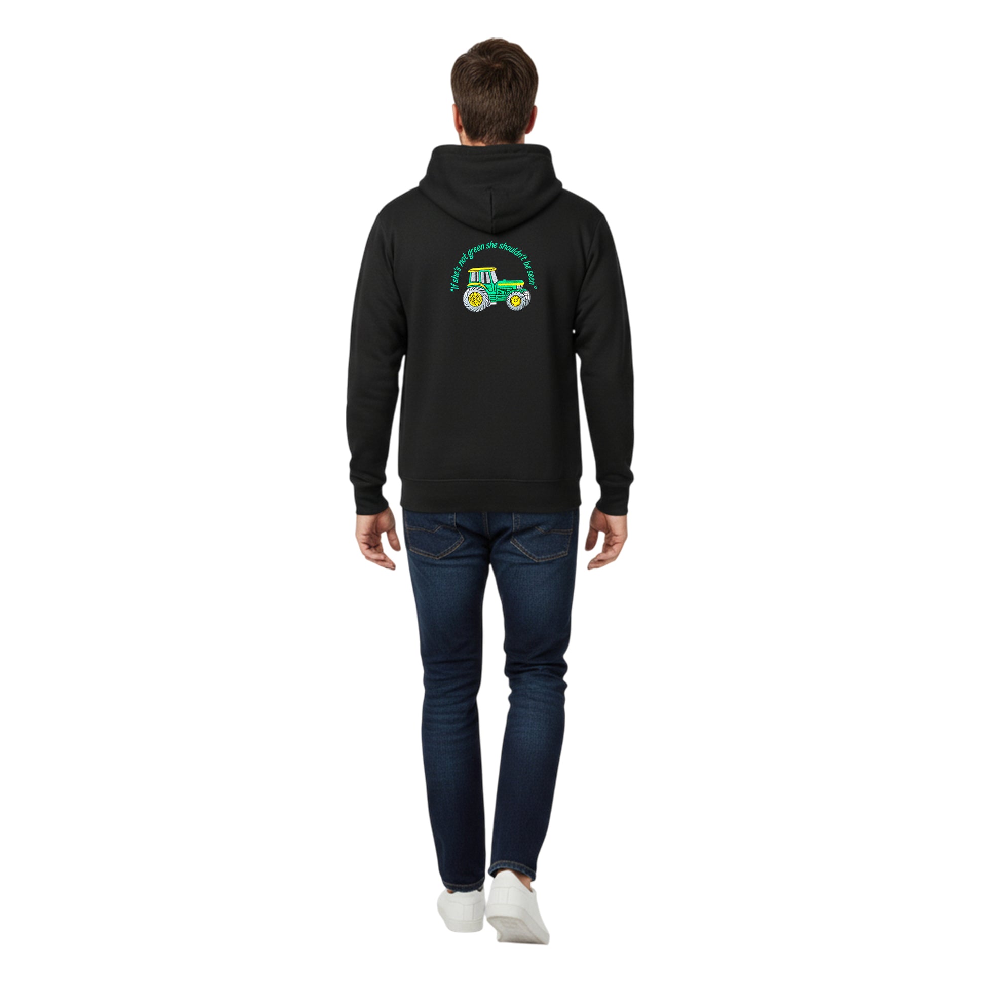 Introducing our Embroidered Tractor Hoody—a cozy and stylish tribute to rural life. With intricate embroidery showcasing a tractor design on the front chest and back, this hoody captures the essence of agricultural charm. Crafted from a durable cotton-polyester blend, it offers comfort, warmth, and breathability. Complete with a kangaroo pocket, ribbed cuffs, and waistband, this unisex hoody is a must-have for tractor enthusiasts and farming aficionados. Embrace the spirit of the fields with our Embroidered Chest and Back Tractor Hoody today.