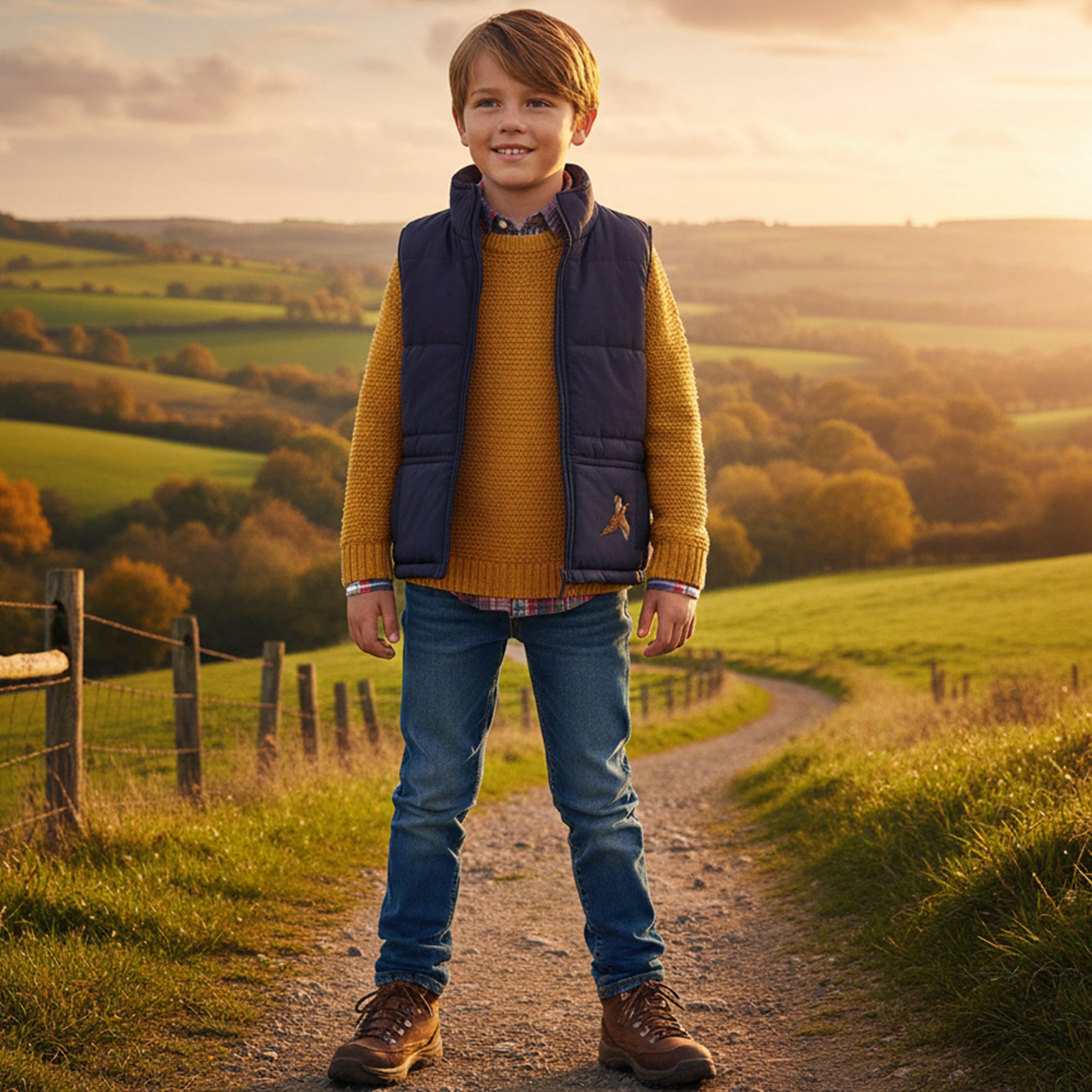 We take pride in our children's range, believing it offers superb value for money without compromising on quality. Give your child the gift of warmth and cuteness with our embroidered gilet, a must-have for any wardrobe.