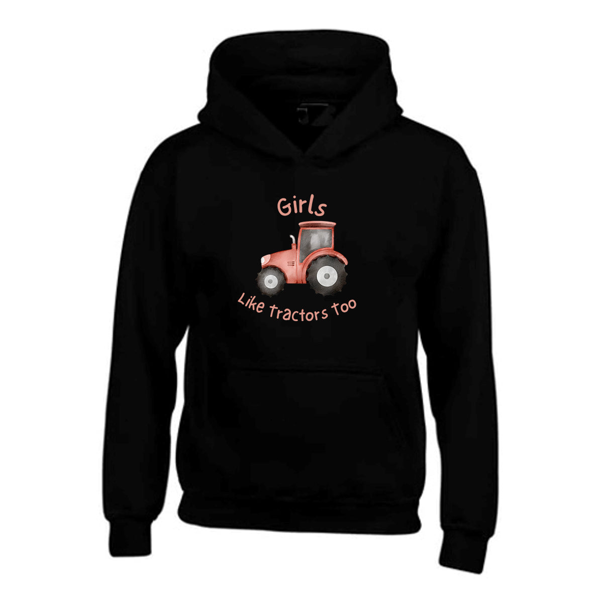 Kids "GIRLS LIKE TRACTORS TOO" Printed Hoodie